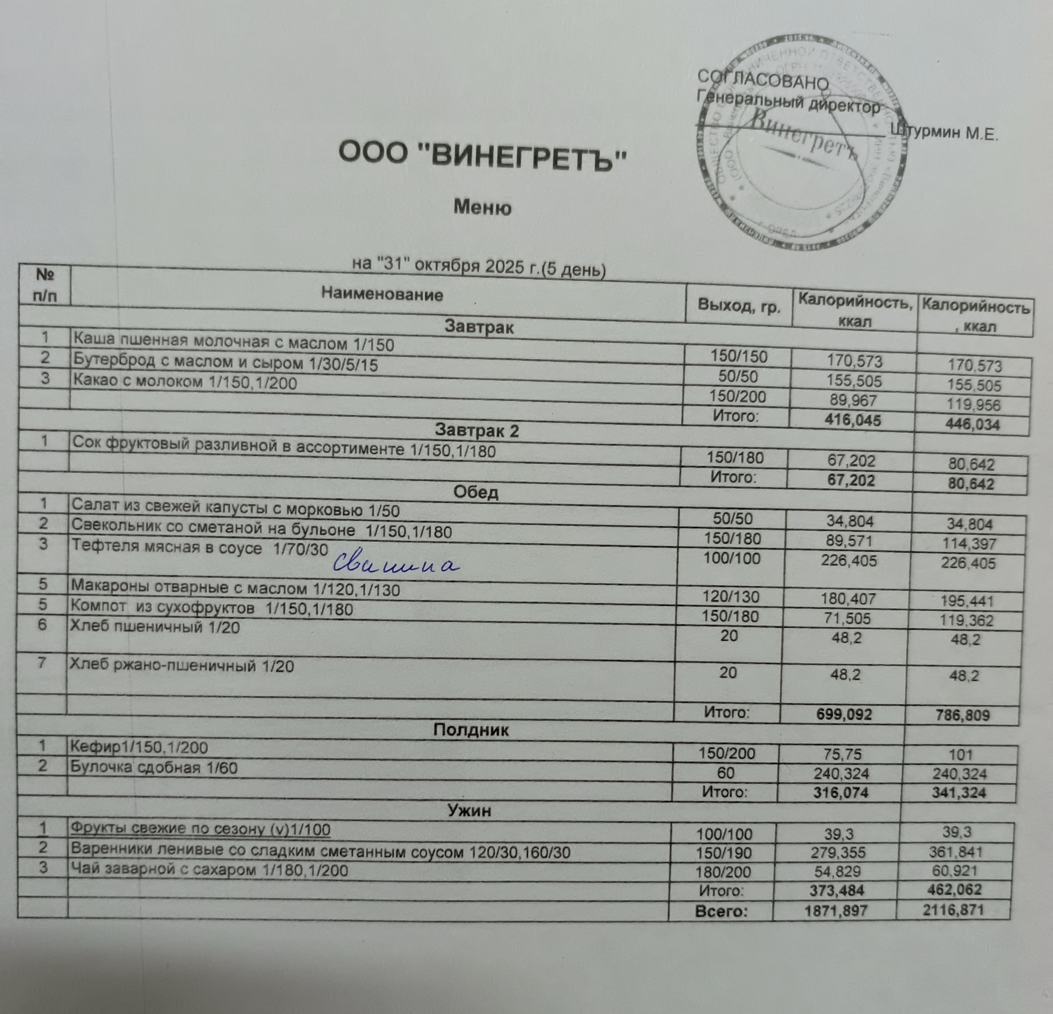 Меню 31.10.2025